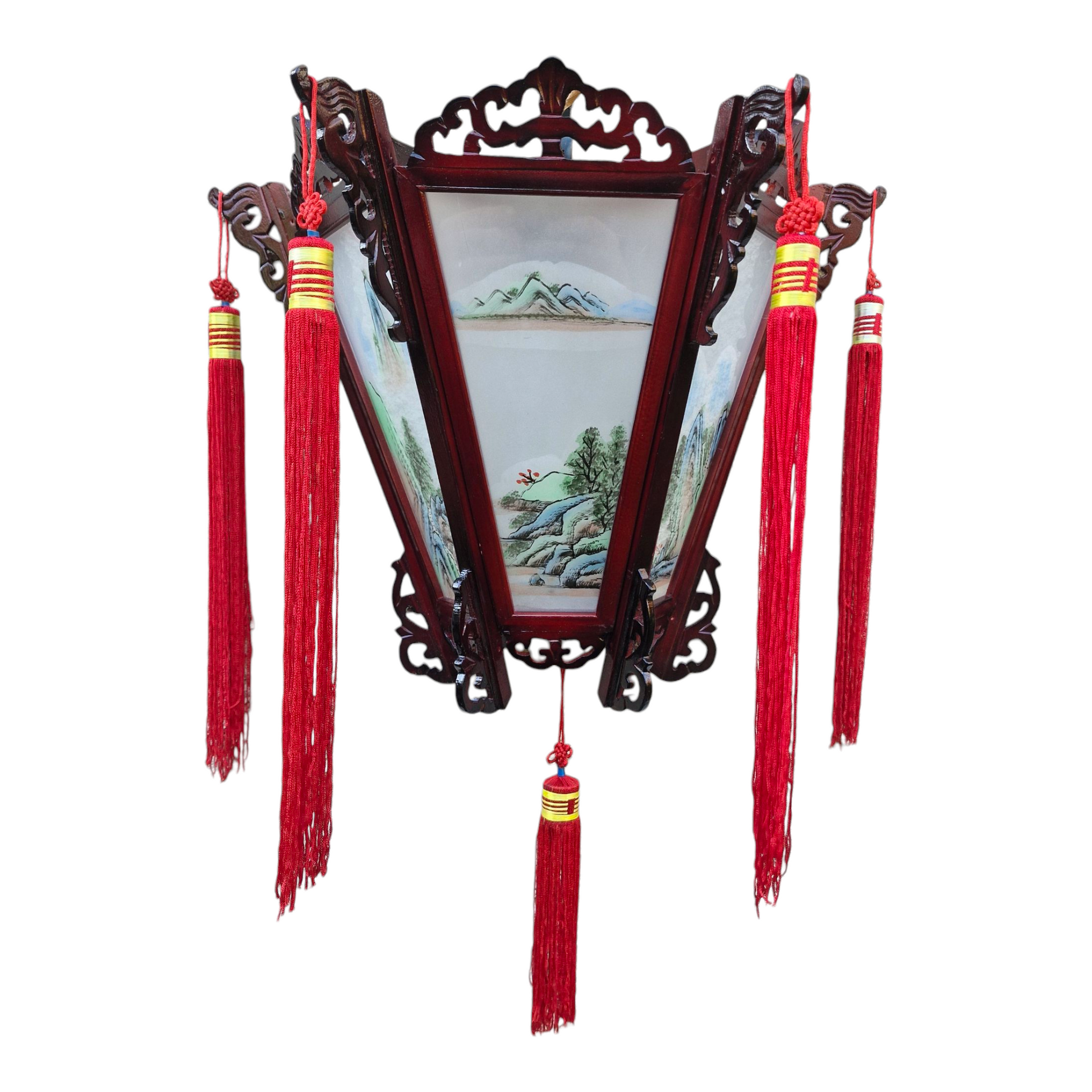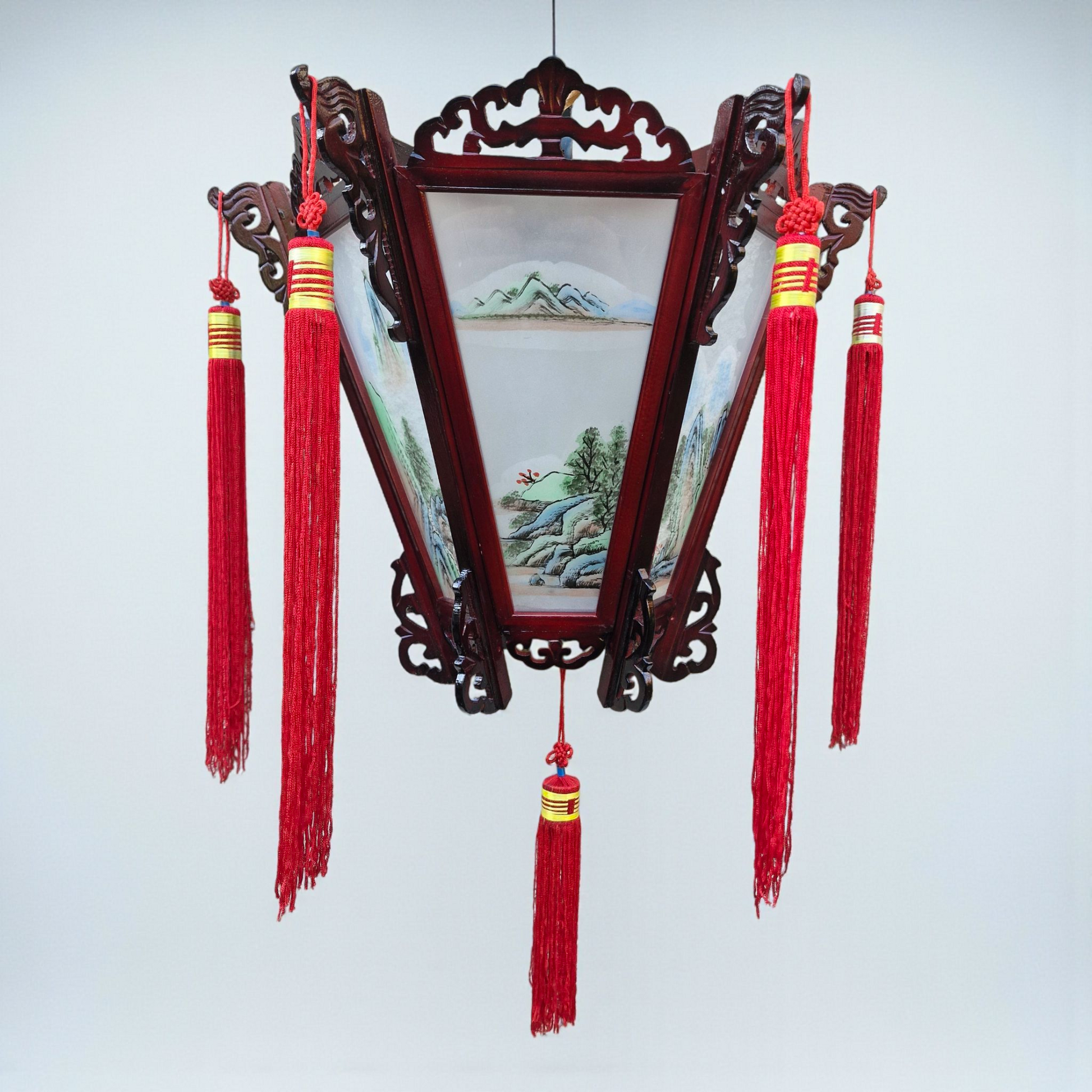 Chinese Palace Wooden Wall Lantern - Painted Landscapes on Glass Panels #2