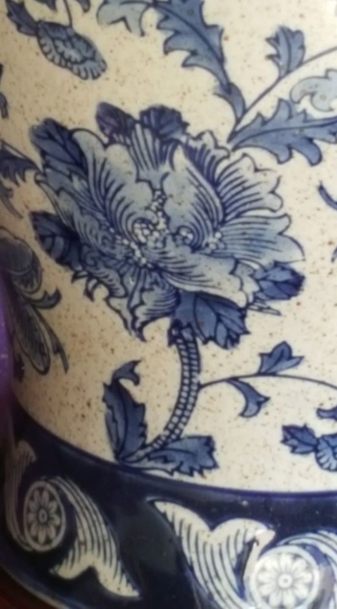 Pair of Chinese Vase Table Lamps with Shade - Blue Hibiscus Pattern - 66cm